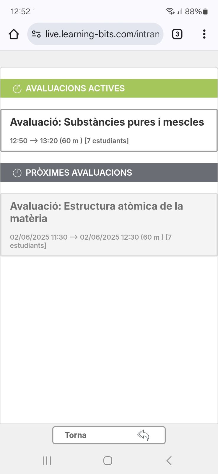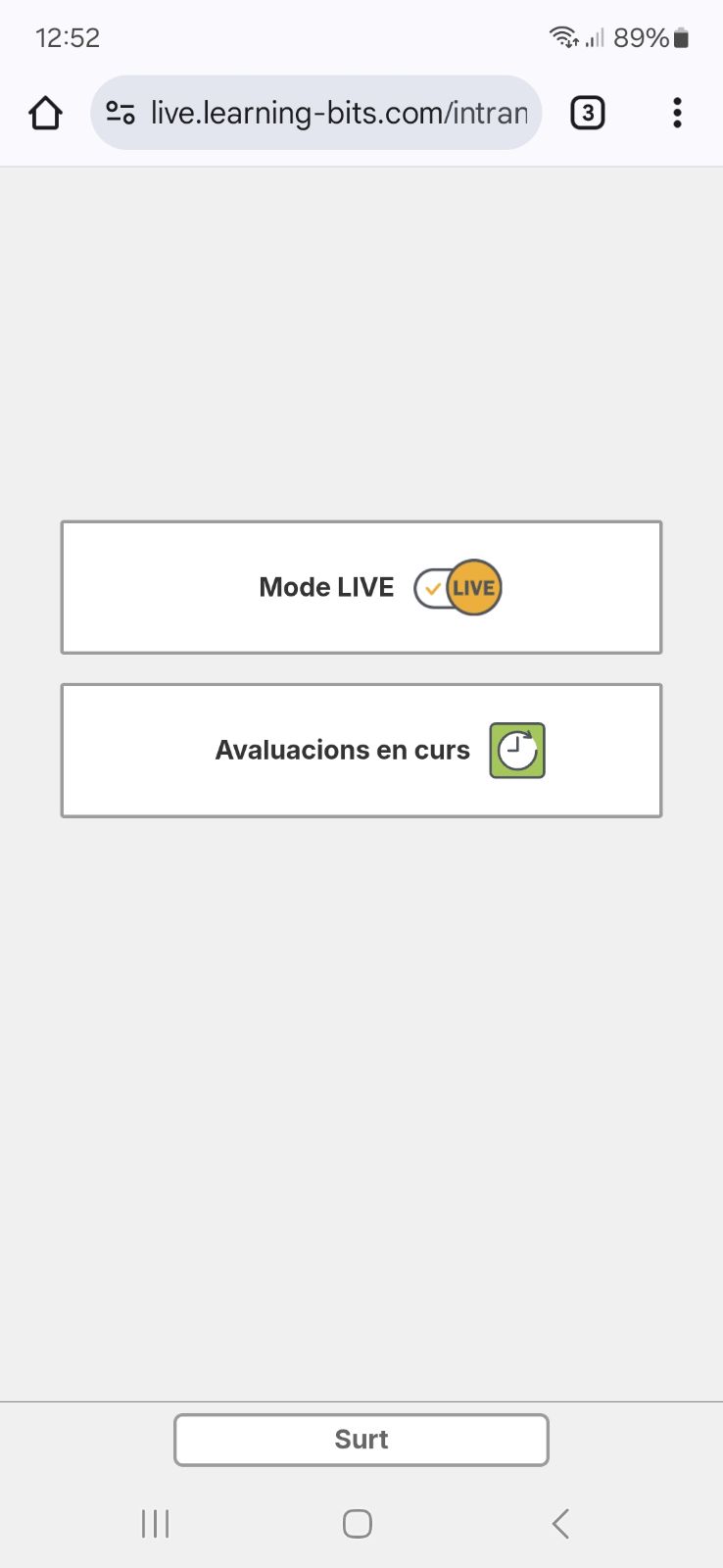 En accedir al Mode LIVE com de costum, ara podràs triar entre el seguiment tradicional i la nova opció Avaluacions en curs.