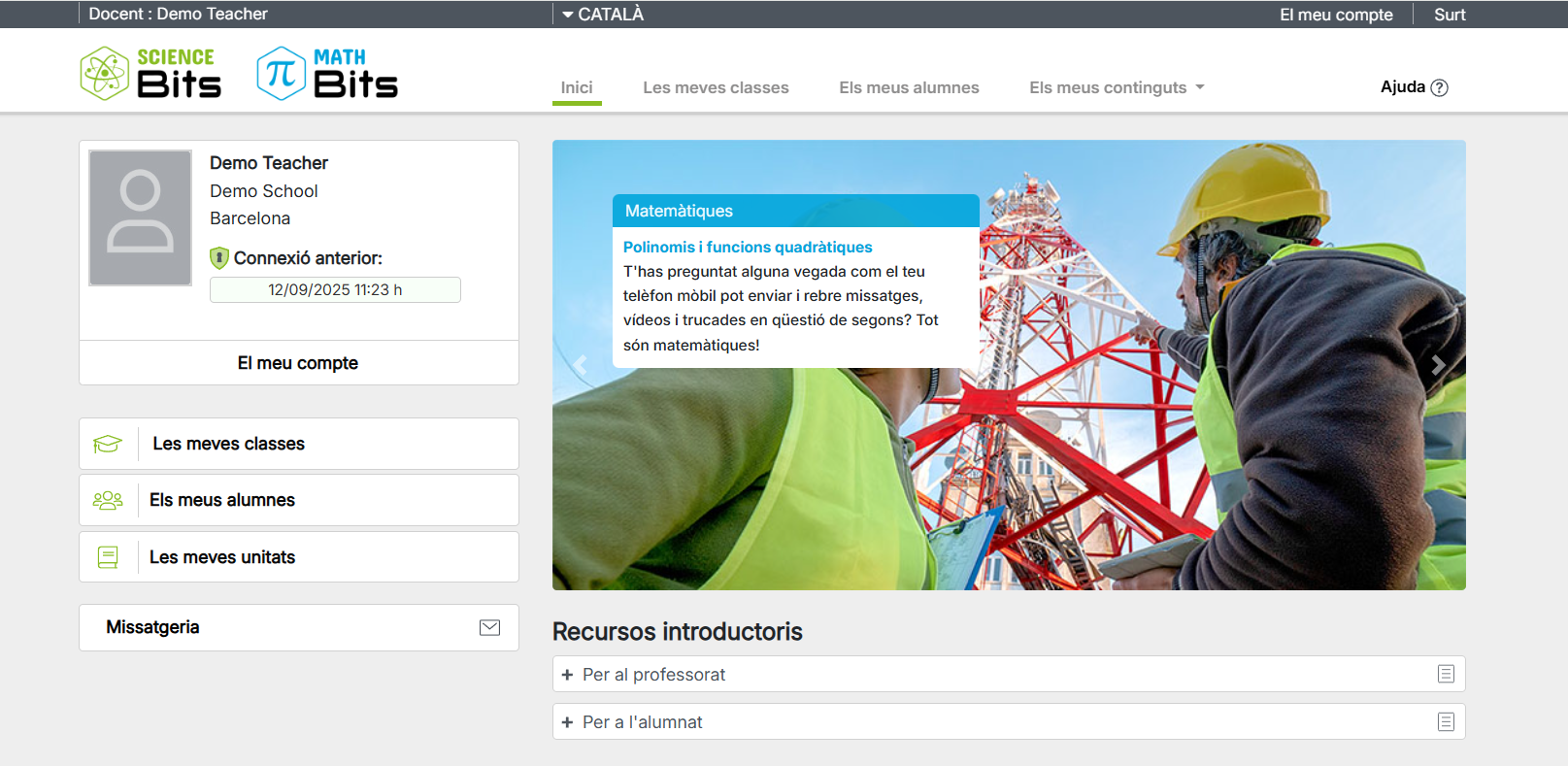 Hem implementat una renovació completa de la nostra intranet a Science Bits i Math Bits. Aquesta actualització té com a objectiu principal oferir-te una experiència d’ús més àgil, eficient i intuïtiva. Aquesta renovació millora significativament el rendiment i la navegació de la plataforma, i manté sense canvis l’estructura bàsica i la disposició dels elements clau per garantir una transició fluida i sense interrupcions en la tasca docent.