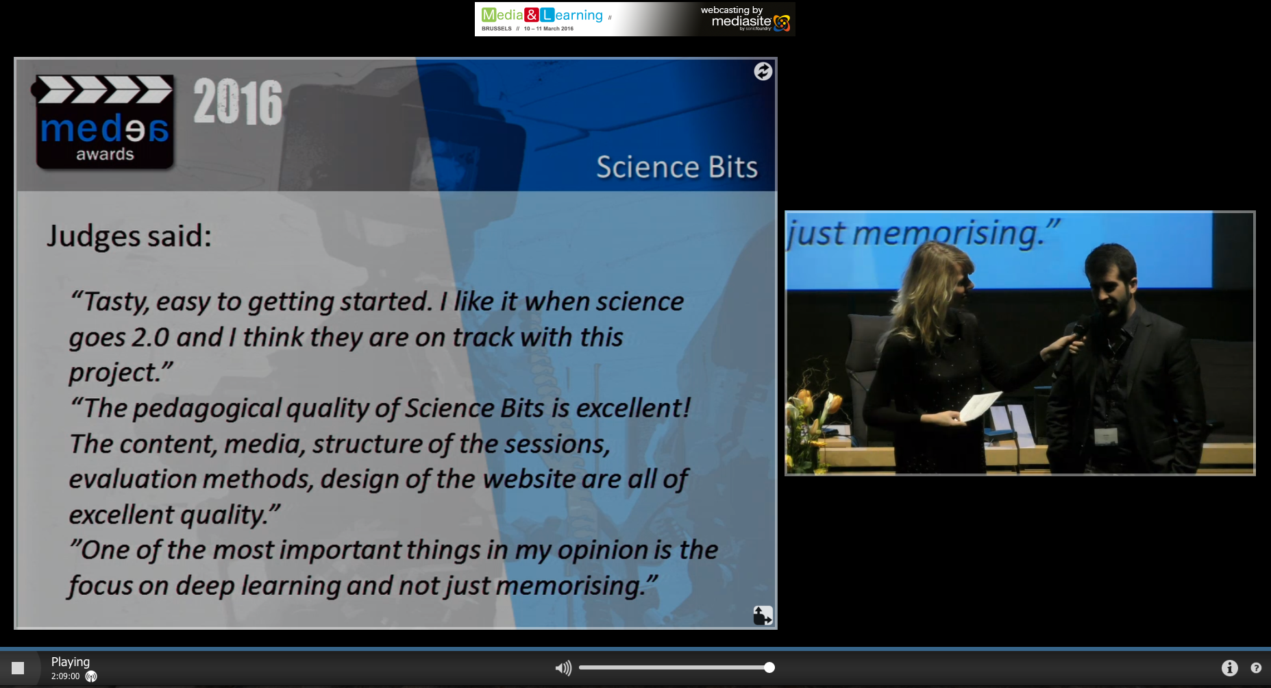 Science Bits attended the MEDEA Awards Ceremony on March 14 during the 2016 Media & Learning Conference in Brussels as one of the 8 finalists between 195 entries from 34 countries.