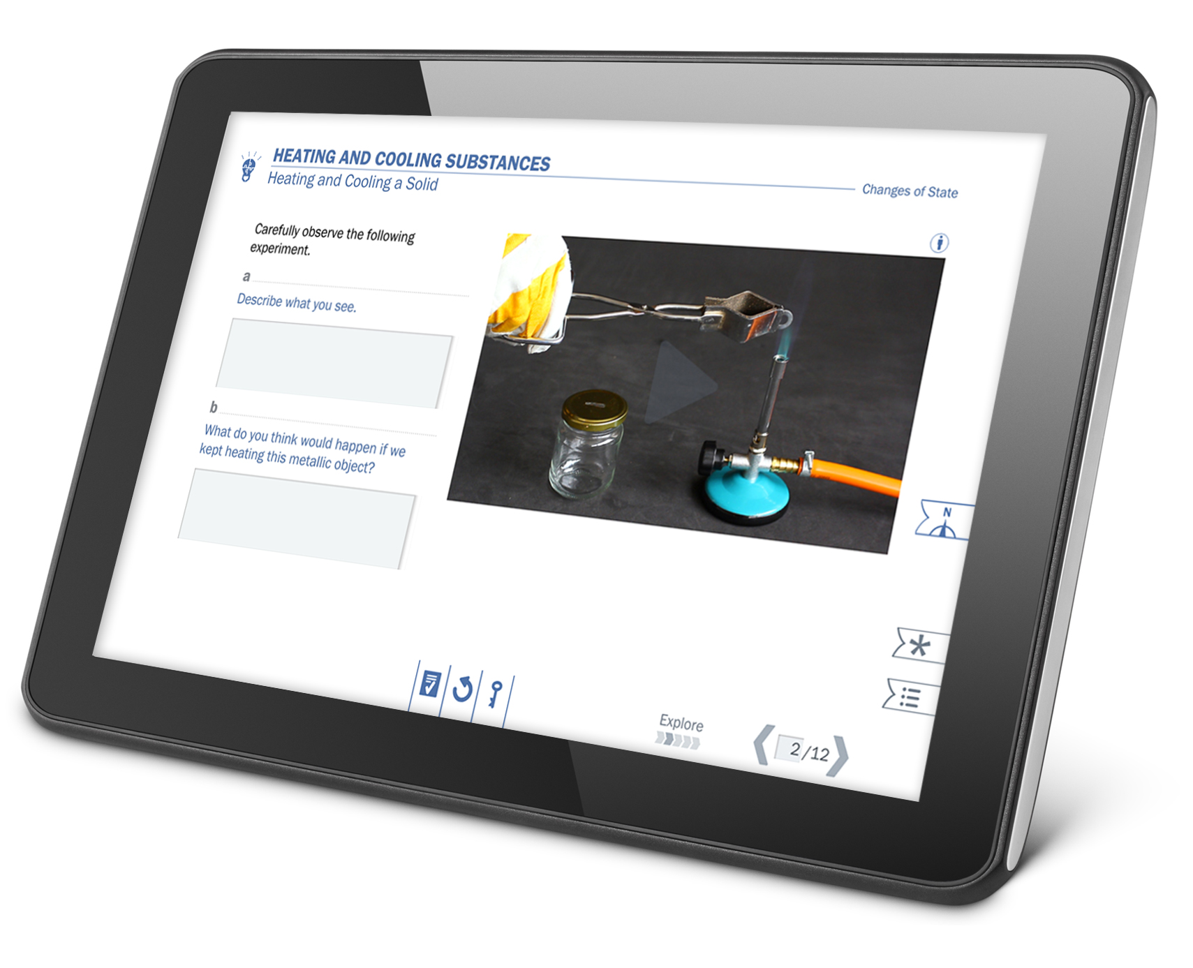 A guided inquiry-based activity challenges students’ initial knowledge and conceptions, and provides opportunities to resolve cognitive conflicts from the previous phase. Students investigate phenomena, discuss ideas and make connections. The teacher becomes a facilitator who listens, observes, and guides students to their understanding. In this stage we can find virtual experiments, interactive explorations, Predict-Observe-Explain video-activities, etc.